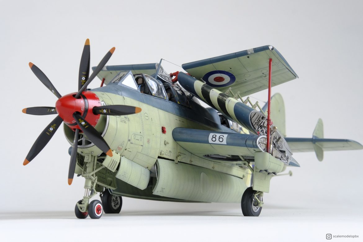 После анонса британцами Fairey Gannet эта коробка стала самой желанной хотелкой. Насколько я понял, переводится Fairey Gannet как веселая олуша. Олуша это такая нелепого вида морская птица, баклан, поправьте, если я не прав. Этот самолет настолько уродлив и несуразен, что именно своим уродством становится потрясающе красив и необычен. Кажется, что перекормленному поросенку никогда не подняться в небо, кабачок с крыльями не должен летать!
