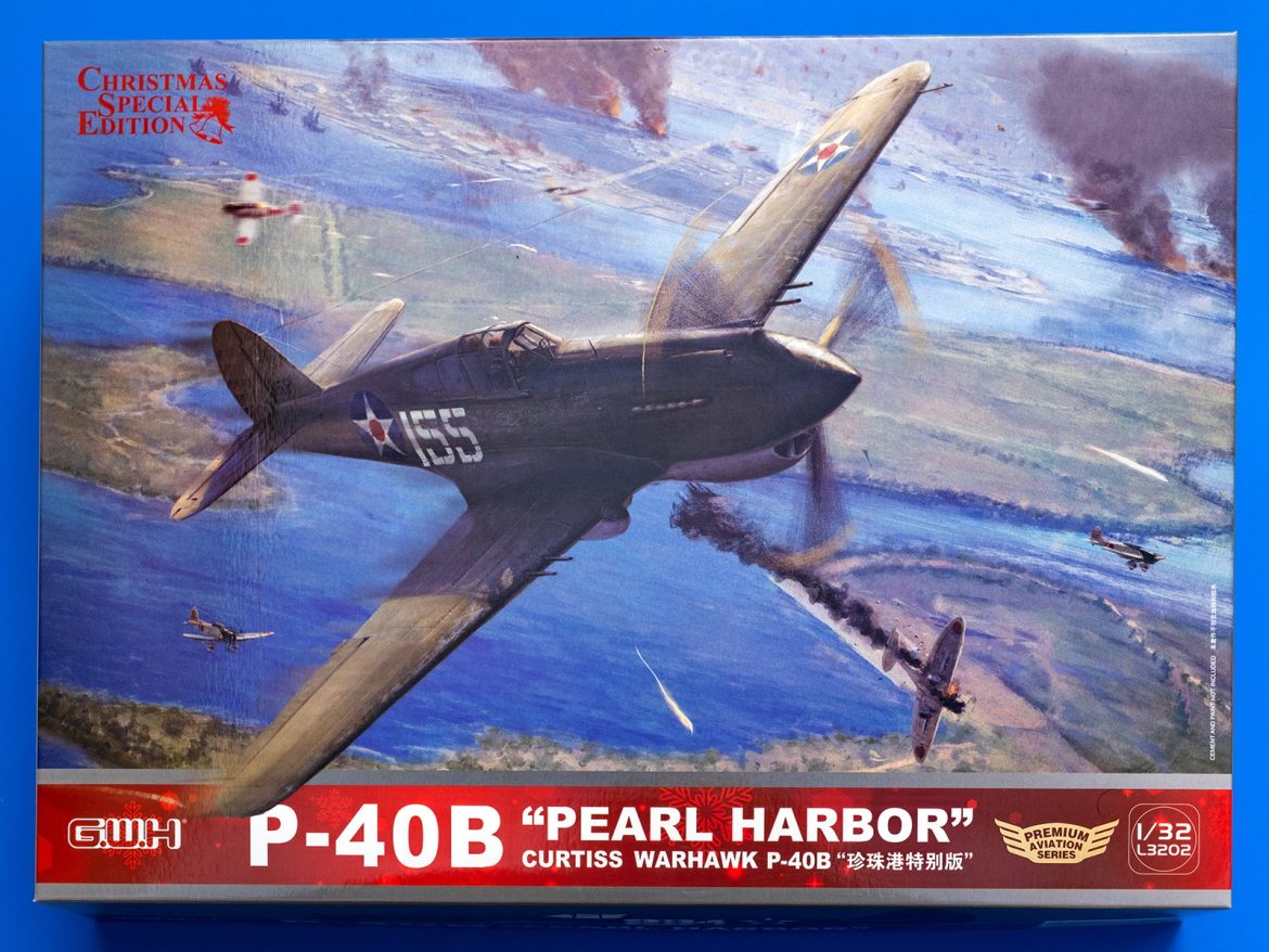 Итак, годом ранее GWH уже выпустила набор Hawk 81-A2, который, по сути, был первой модификацией P-40. Новый набор, выпущенный на основе предыдущего) представляет модификацию P-40B Warhawk (британское обозначение Tomahawk Mk.IIA) с декалями эскадрильи с базы в Перл-Харбор. В то же время, в набор входит дополнительный топливный бак с крепежом и это позволяет построить модификацию P-40C (Tomahawk Mk.IIB), которая была представлена в СССР в больших количествах.